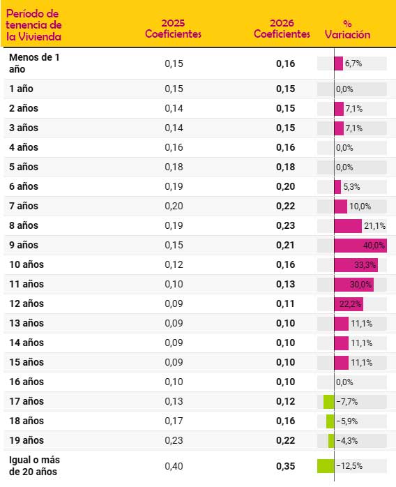 Esta actualización, recogida en el BOE309 de 24 de diciembre 2025, afecta al cálculo del impuesto cuando se utiliza el método objetivo, y modifica de forma significativa los coeficientes en función del número de años transcurridos entre la adquisición y la transmisión del inmueble.