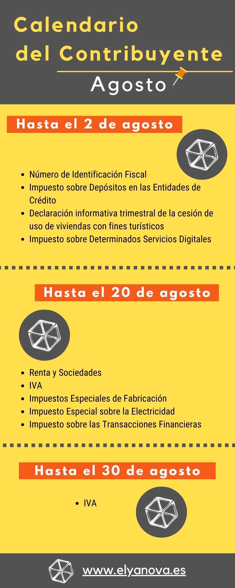 Infografía del calendario del contribuyente agosto 2021